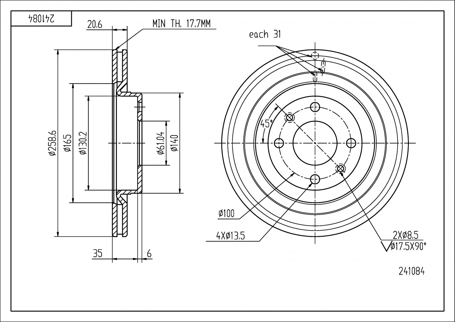 TARCZA HAM. FORD T. TRANSIT 06- 280X16 WEW.96 Z POWŁOKĄ ANTYKOROZYJNĄ